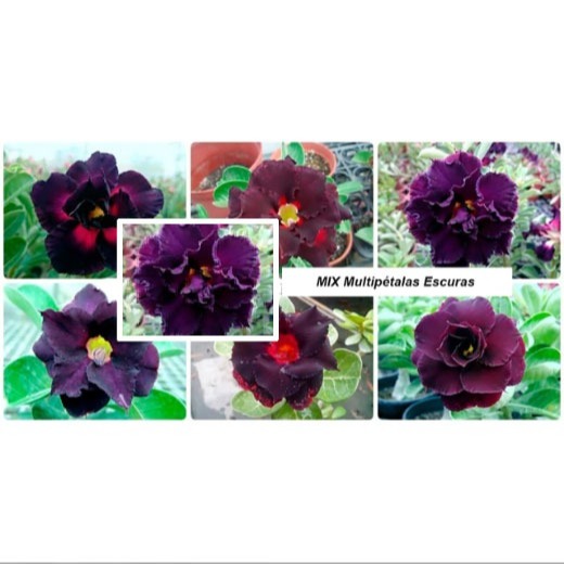 Kit com sementes de Rosa do Deserto (Adenium Obesum) na tonalidade NEGRA, reunindo 6 variações de cor em um único pacote.